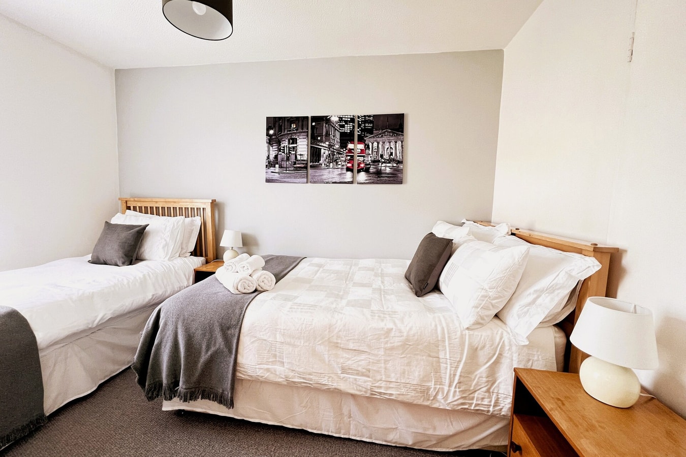 The master bedroom features a supremely comfortable king-size bed, quality linens, towels, plenty of storage. The other bedroom features similar amenities but it has 1 smaller double bed and 1 single bed.