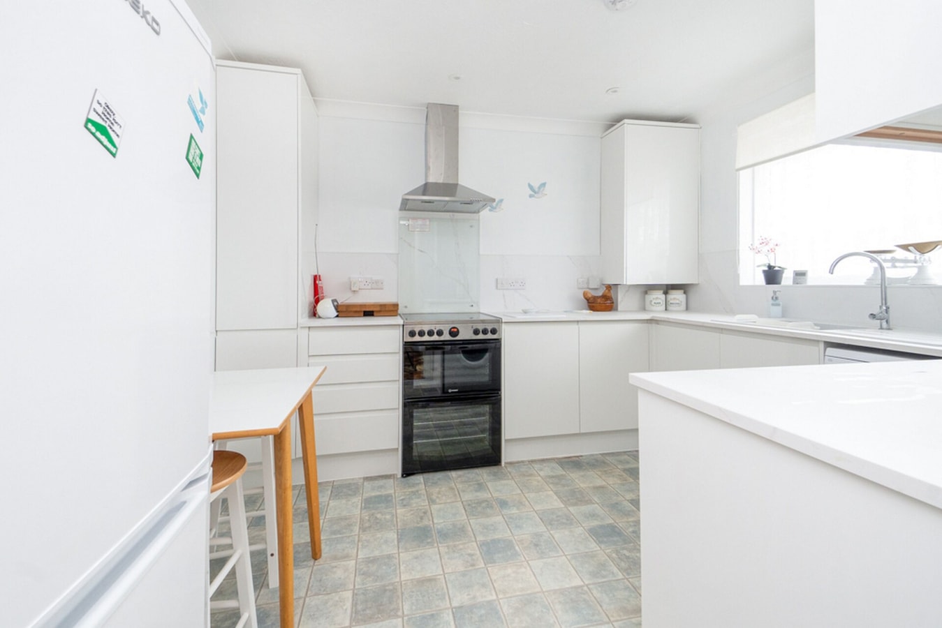 A tiled entrance porch is ideal for taking off sandy shoes and wet beach gear and has storage for coats and shoes. This leads into a hallway with access to the kitchen and living area.