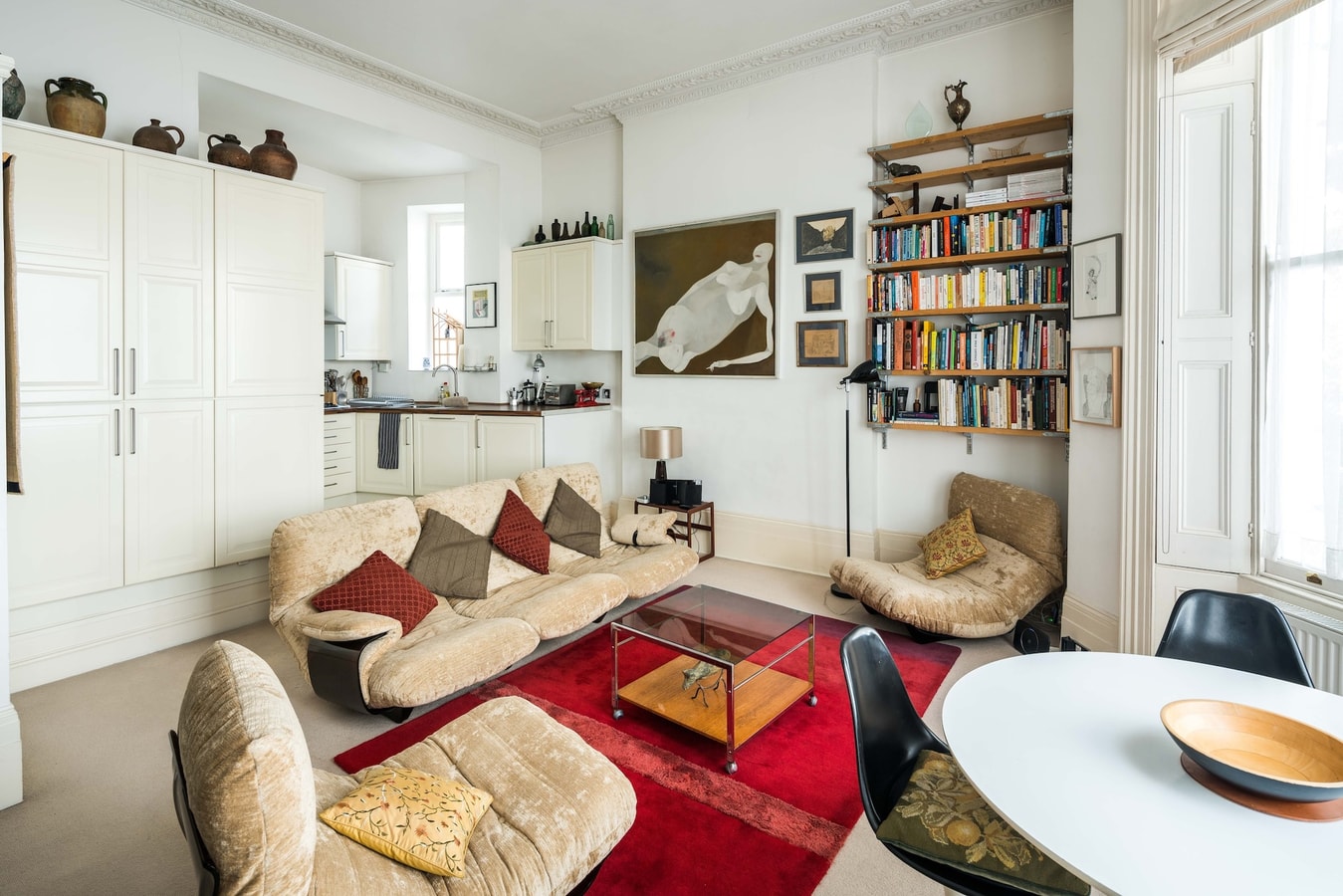 Charming and spacious one bedroom apartment with high ceilings, art filled walls and bookshelves full of interesting books. Very well located and easy transport links to the hustle and bustle of central London.