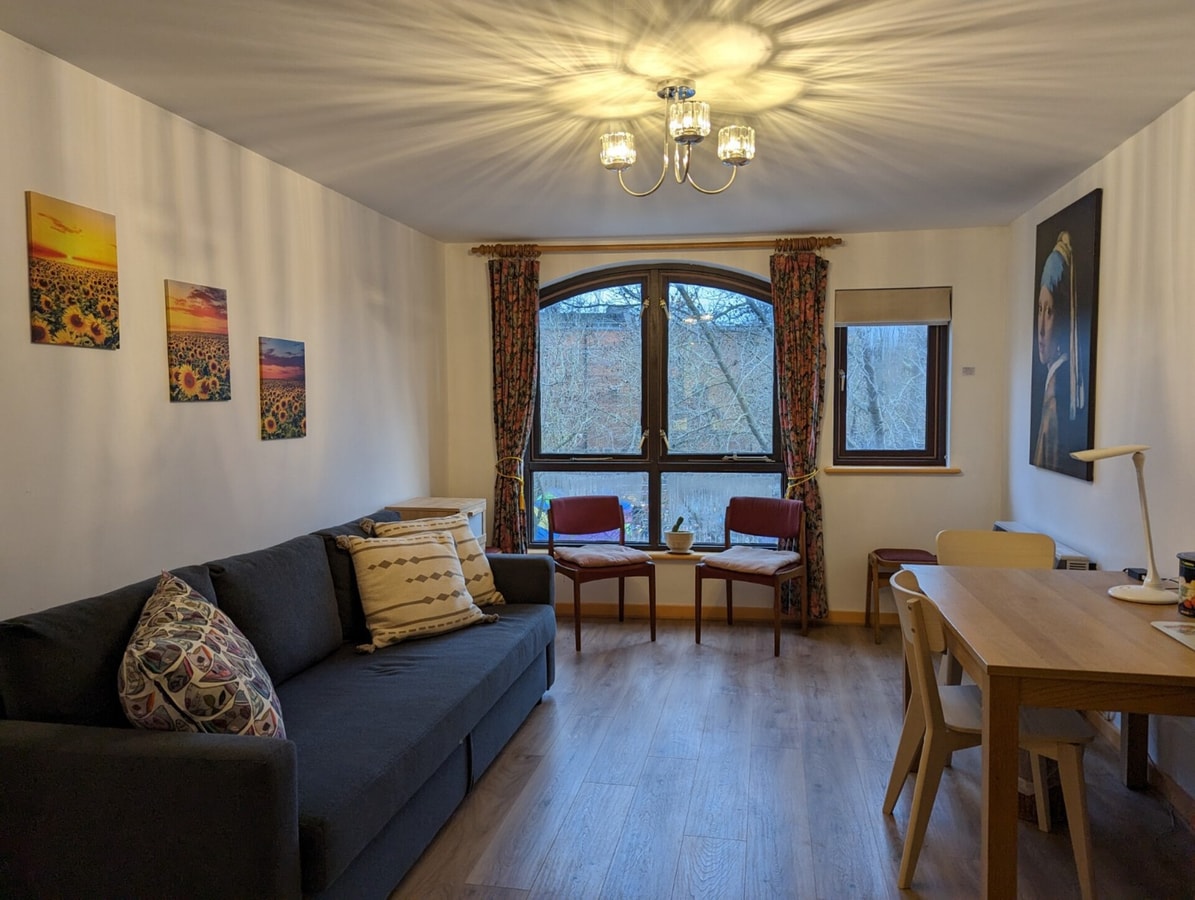 Fantastic, modern, light-filled second floor flat. Bedroom and living room have own separate doors, so it can be used as a 2-bedroom flat. The South facing windows and balcony offer both sunshine and great views. Gloucester Green is adjacent to the bus terminal and two blocks from the train station. There is a great market in the square right outside the property from Wednesdays to Saturdays.