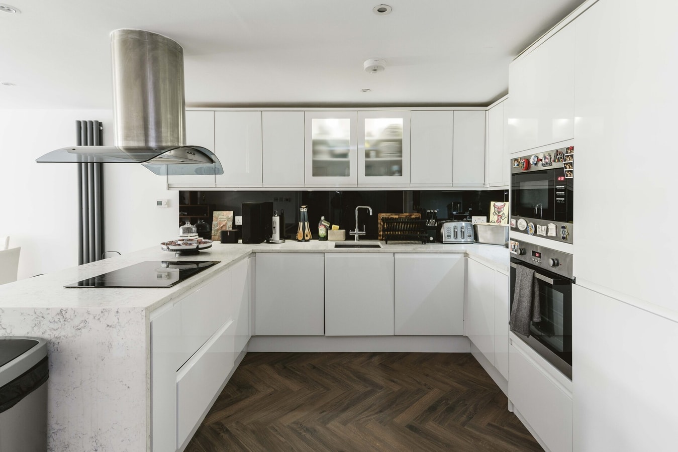 Modern kitchen fully equipped with Nespresso Delonghi coffee maker, boiling tap, pans, pots and crockery for those of you looking to cook and spend a chilled night in and a dining area for 4.