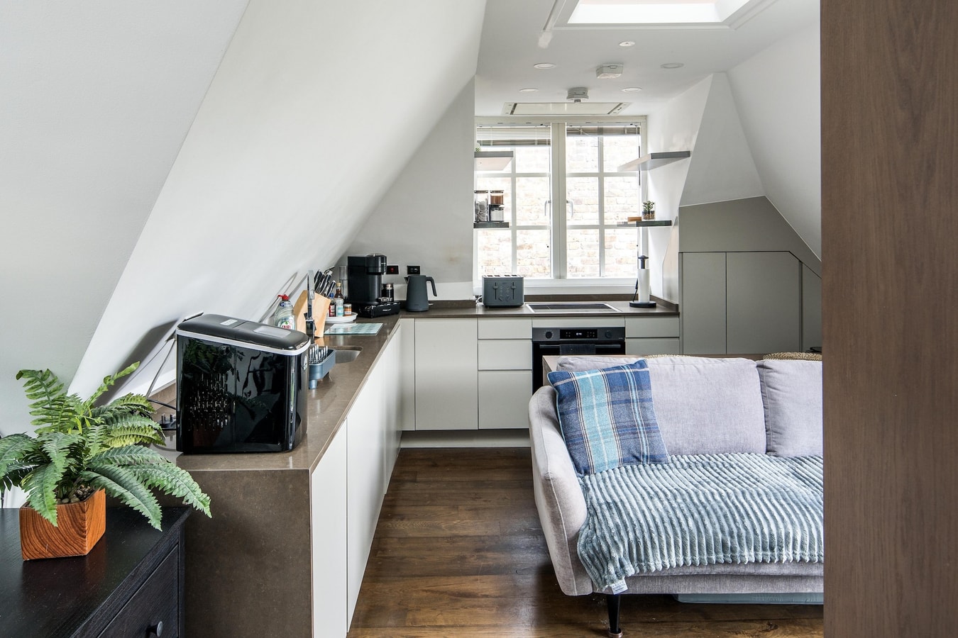 This flat is located on the 3rd floor with stairway access only, and offering an open-plan and spacious lounge with TV (that has no freeview, but it has WIFI connection to use your own streaming services on it) together with the dining area and kitchen with all its modern appliances.