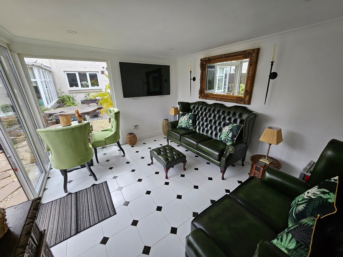 Braveheart Haven is a bold 4BD retreat in central Stirling with castle views, tropical gardens, and unique decor. Enjoy an indoor hot tub, BBQ hut, and garden room with a large TV. Perfect for families, with 2 lounges, Smart TVs, and private parking. Just minutes from riverside walks and iconic landmarks, it's your stylish Scottish escape.