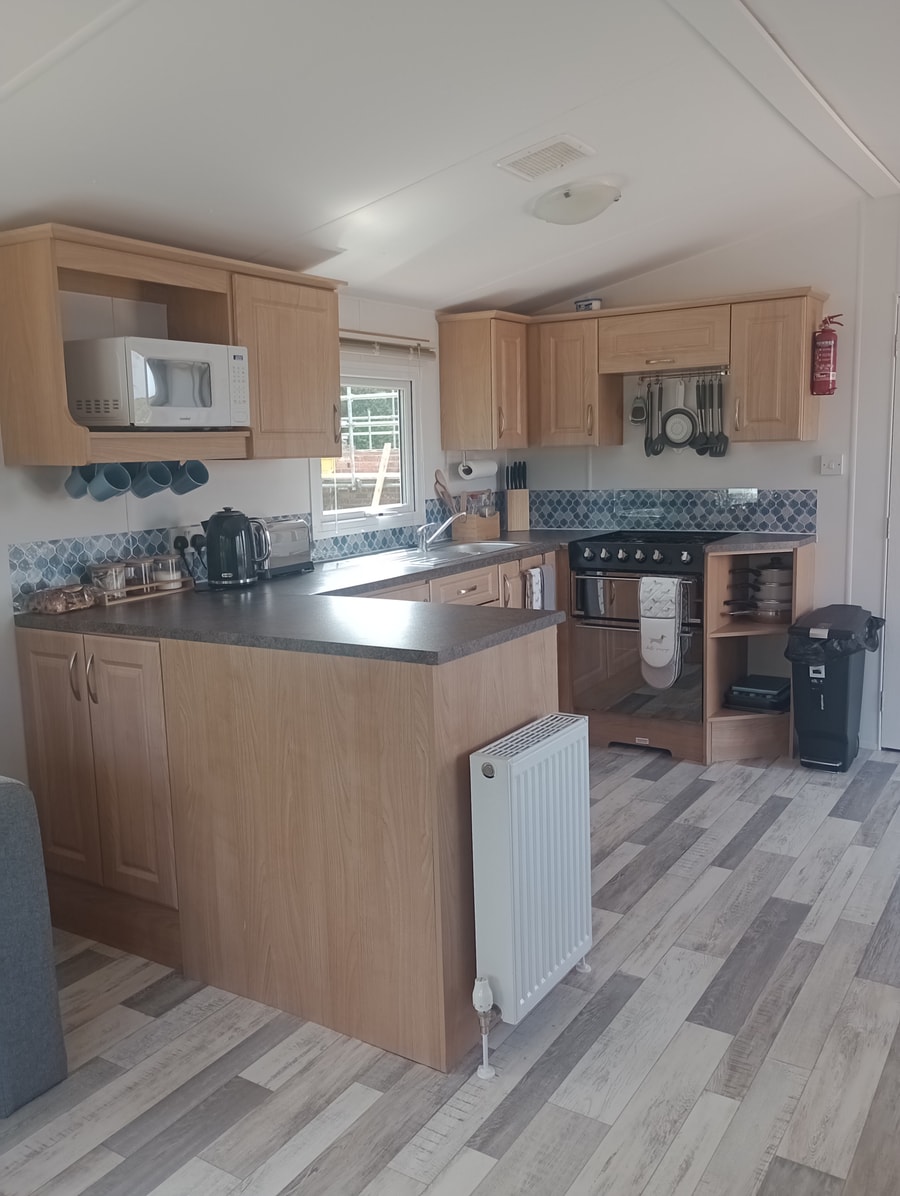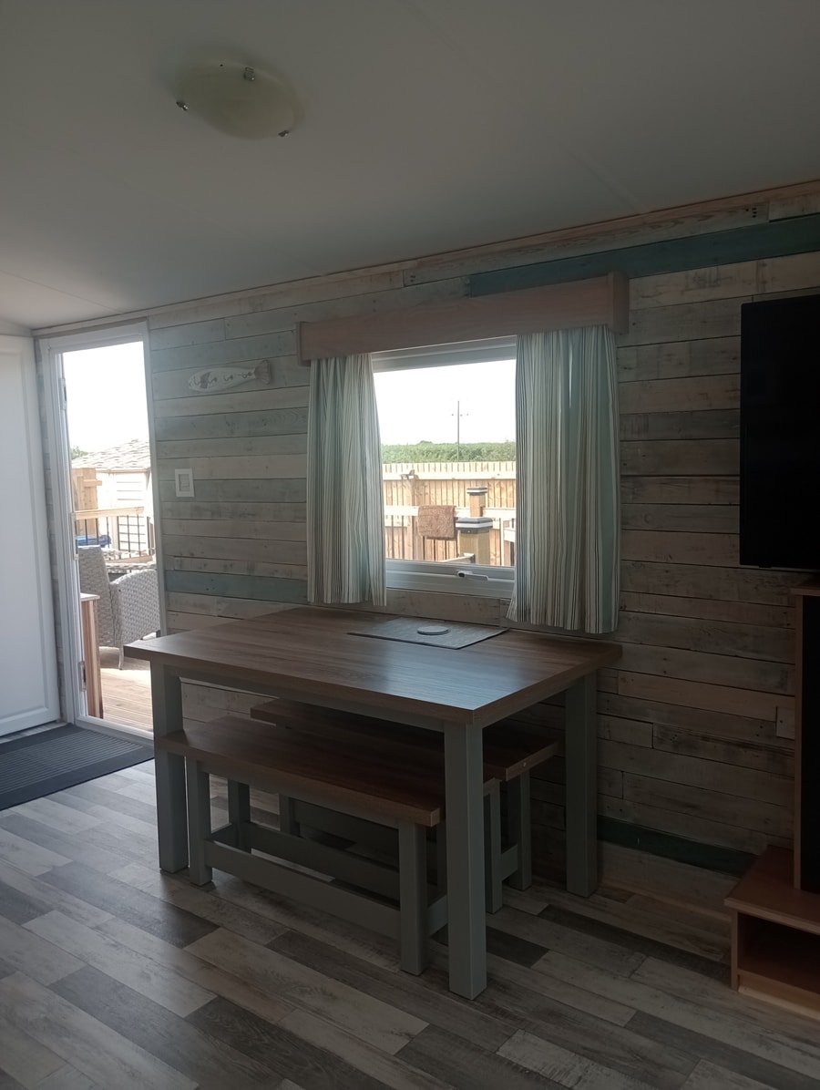 Overlooking our beautiful lake with unobstructed views of the countryside, relax on your large deck area whilst the sun sets. In your 6 birth completely re vamped rustic Static Caravan.