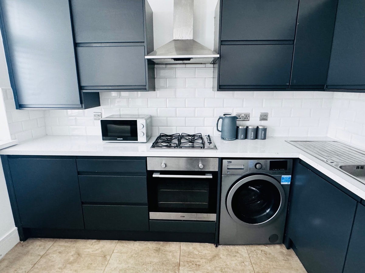 Modern 1-bedroom apartment in the heart of High Wycombe, just a 2-minute walk to the train station with direct links to London in under 30 minutes. Features a king-size bed, stylish open-plan kitchen, cozy lounge, and modern bathroom. Perfectly located near shops, restaurants, Swan Theatre, cinema, bowling, and go-karting. Ideal for commuters, business travelers, or couples looking for a convenient and comfortable stay.