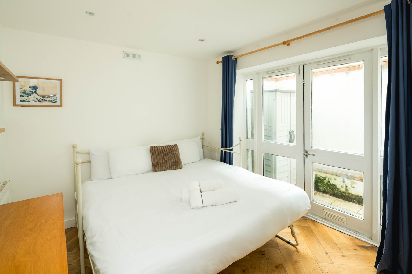 Stay in this elegant 4-bedroom Islington flat with a large private garden, 2 bathrooms and a guest toilet. Enjoy a bright living room with a comfy sofa and TV, a fully equipped kitchen, and four spacious double bedrooms. With sleek wooden flooring and modern décor throughout, it's the perfect base for families or groups exploring London.