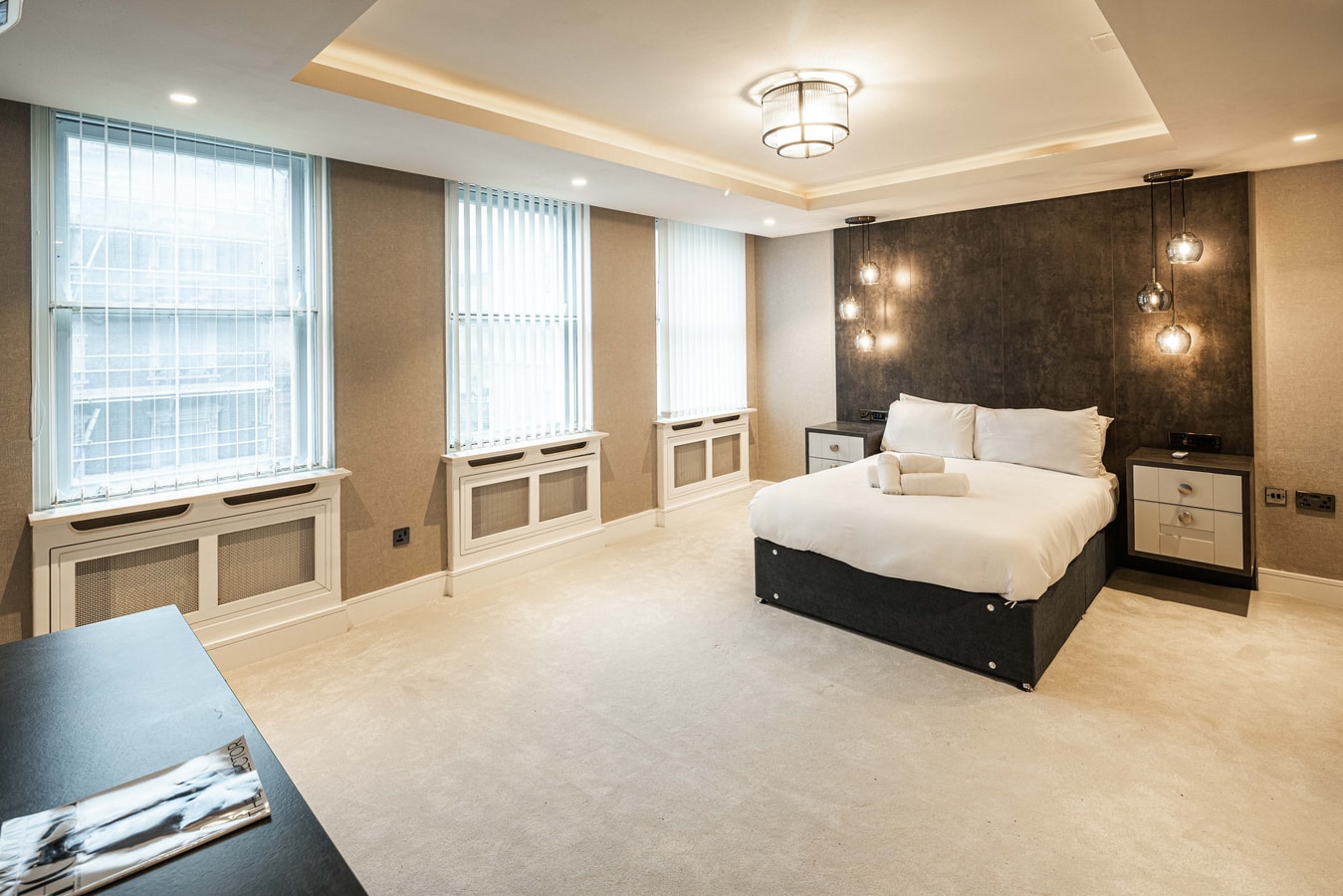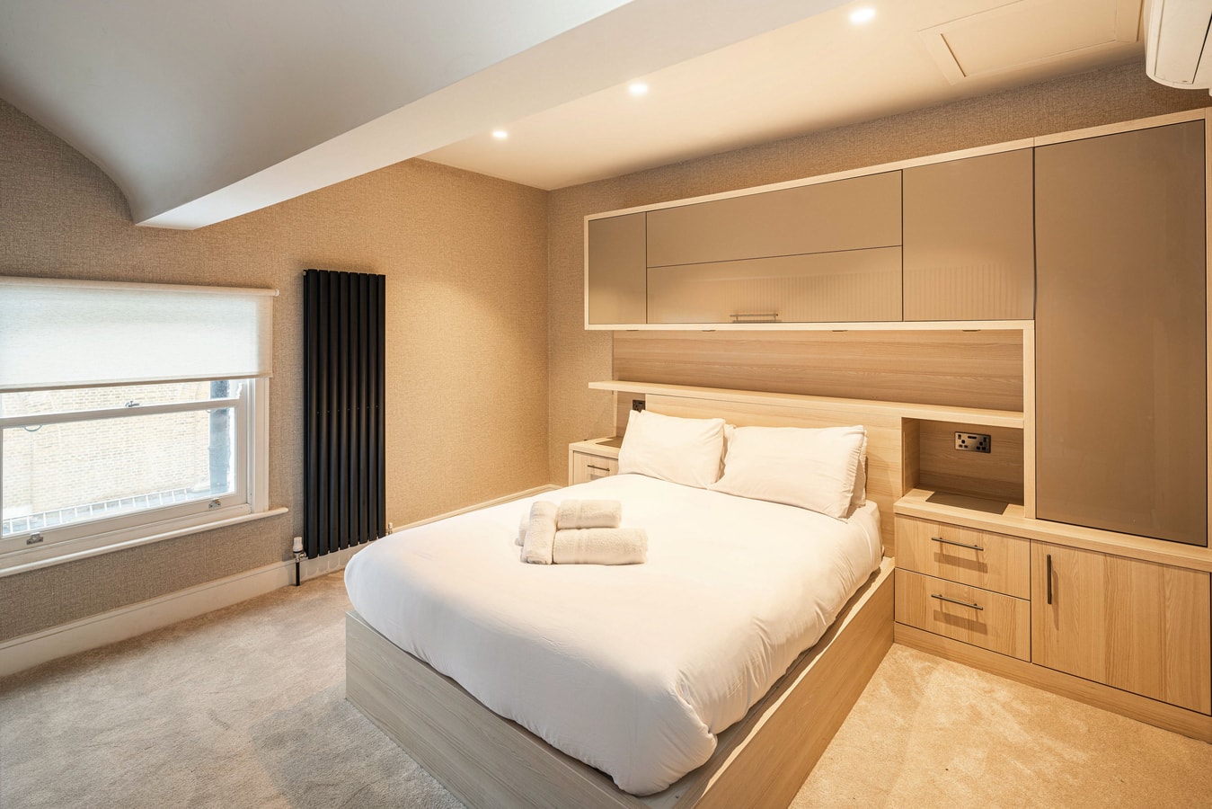 Spacious and modern three-bedroom townhouse in central London, ideal for families, groups, or professionals seeking space and privacy. Arranged over multiple floors, it sleeps up to eight guests and has three bathrooms, well suited for group stays and longer visits. Features a bright living area with seating and TV, a fully equipped kitchen, and comfortable bedrooms. Close to Hyde Park, Oxford Street, and excellent transport links.