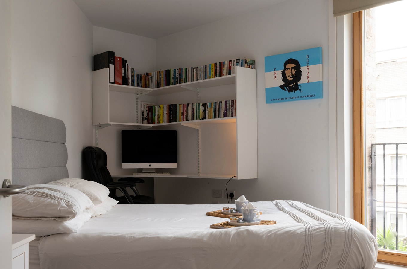 The bathroom is bright and modern and includes a full size bath, which is uncommon in central London. Fresh towels and quality, natural products are provided.